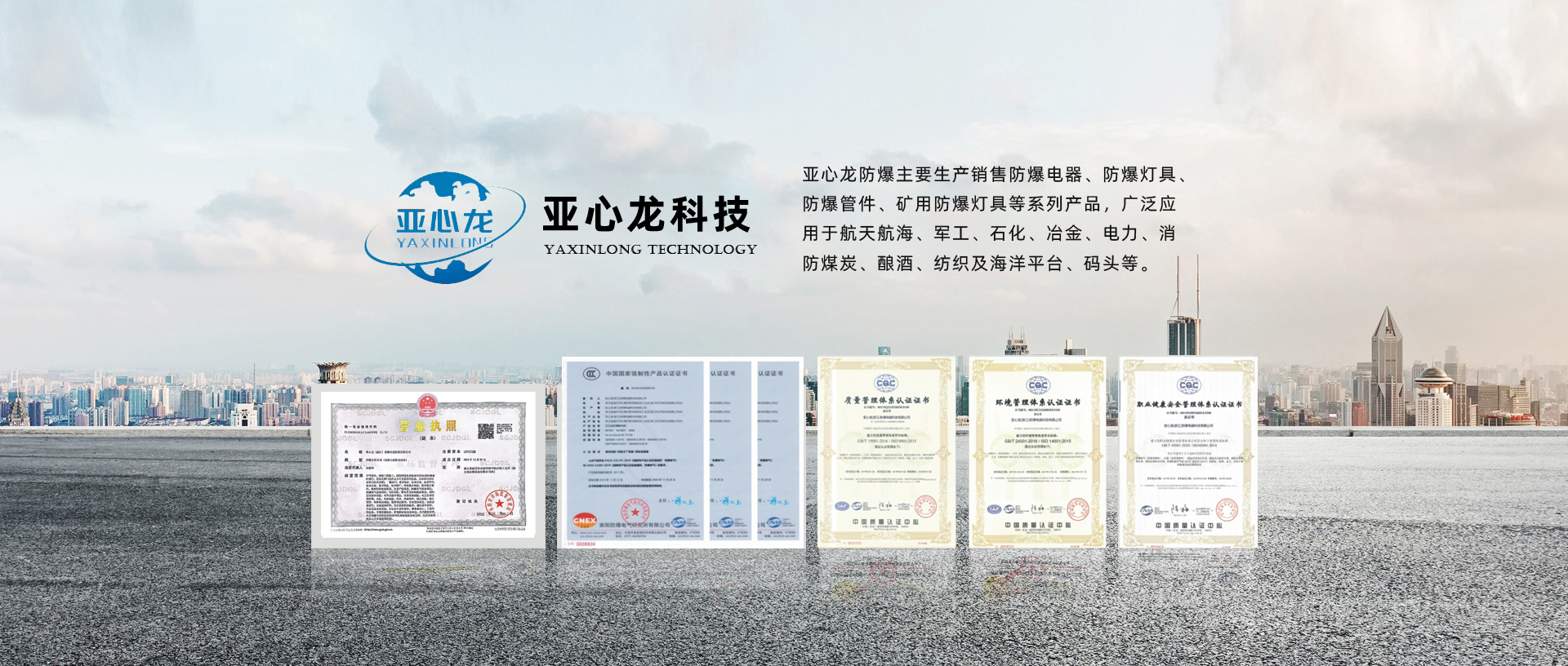 亞心龍(浙江)防爆電器科技有限公司座落于中國(guó)電器之都之稱(chēng)的樂(lè)清市柳市鎮(zhèn),是一家集生產(chǎn)、銷(xiāo)售為一體的公司,主要生產(chǎn)銷(xiāo)售防爆電器、防爆燈具、防爆管件、礦用防爆燈具等系列產(chǎn)品,產(chǎn)品結(jié)構(gòu)輕巧、性能穩(wěn)定、造型美觀、檢修方便快捷、配套功能齊全,被廣泛應(yīng)用于航天航海、石化、冶金、電力、消防、煤炭、釀酒、紡織及海洋平臺(tái)、碼頭等各個(gè)領(lǐng)域、均獲得廣大用戶(hù)的好評(píng)。
